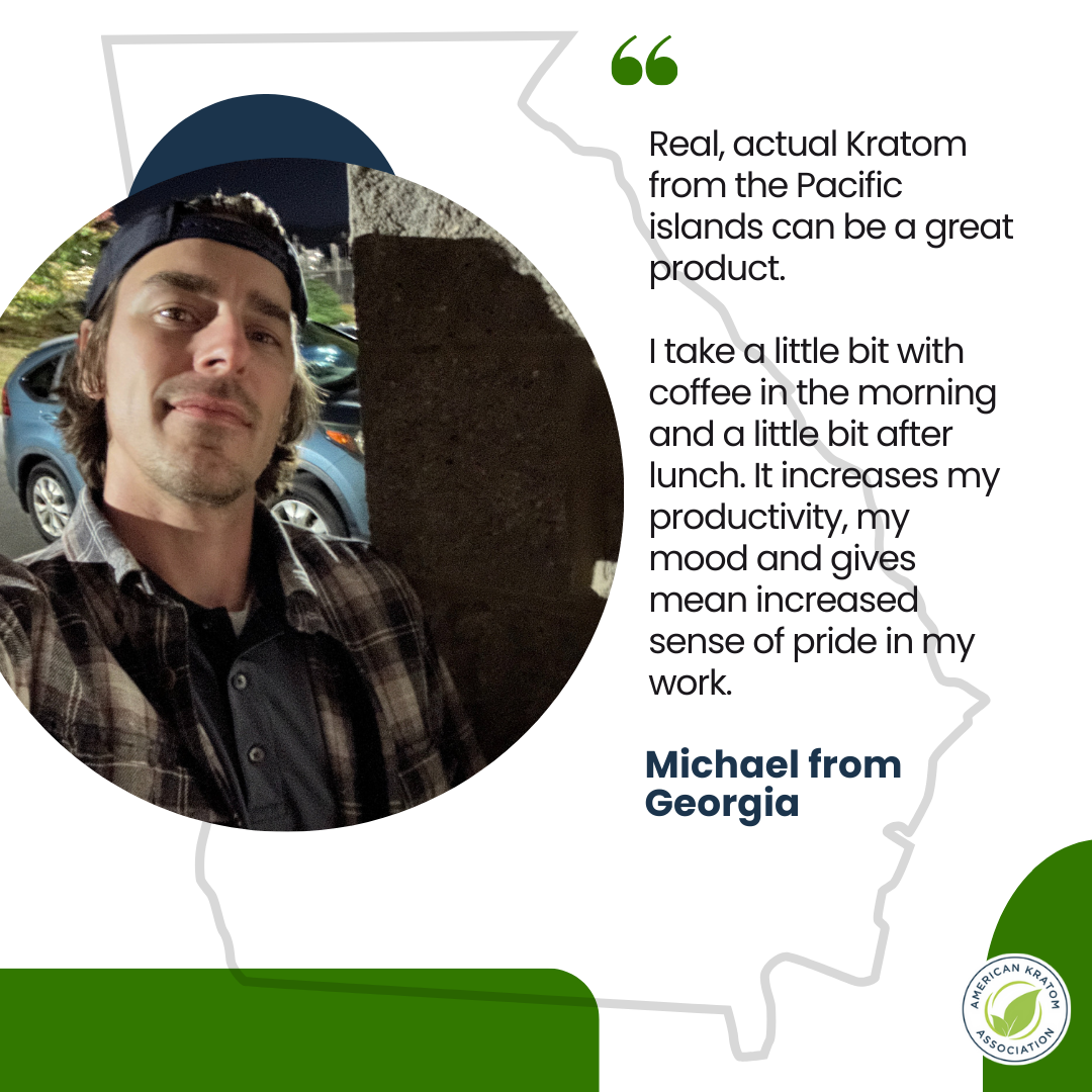 "I believe kratom should be legal and accessible. I have been taking it as a supplement for over 8 years and have great results with the plant. The American Kratom Association has done so much good with helping this plant stay legal and available for those who need it."