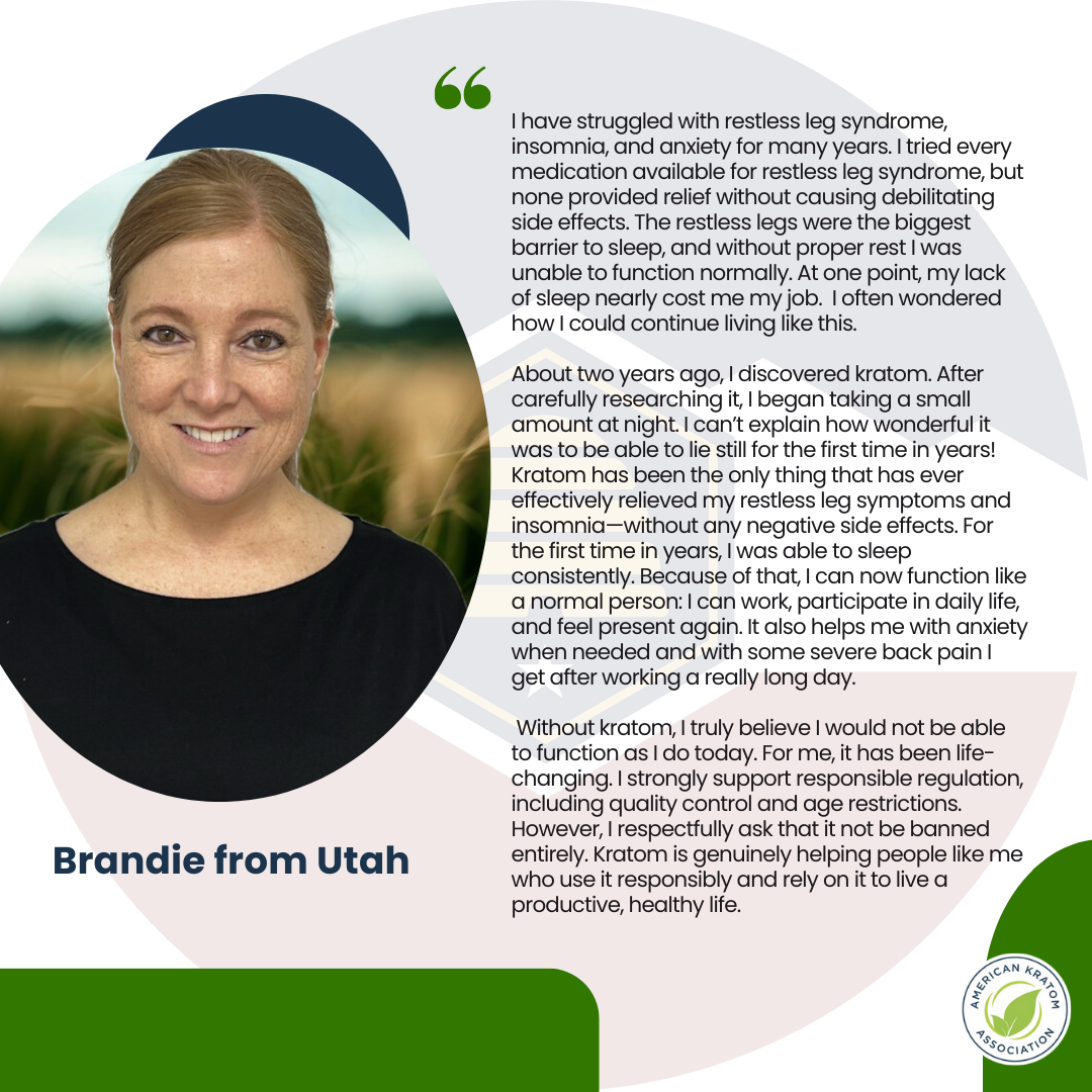 Please do not ban kratom in Utah. It has been the only relief I have found for the Willis Ekbom disease I suffer from. I’ve tried so many prescriptions and they just do not help. Please allow me to be able to get at least some rest. Thank you for understanding